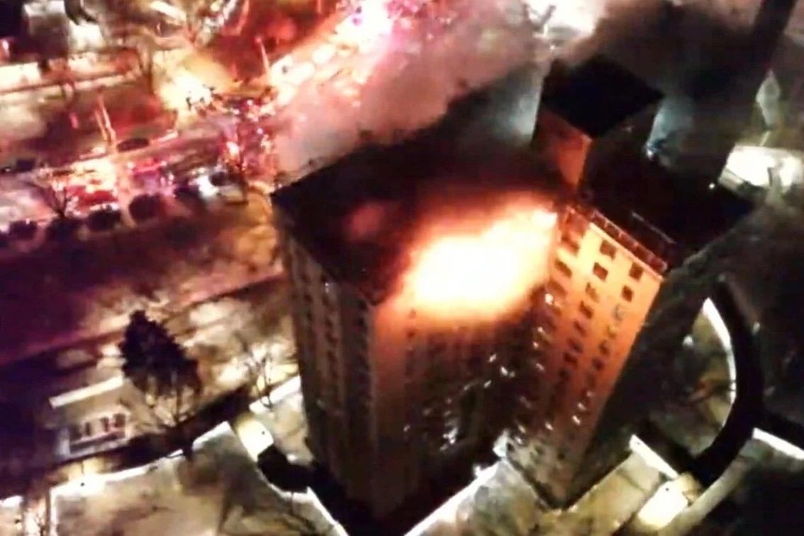 当地时间1月24日凌晨,美国纽约市布朗克斯区一栋高层公寓的顶部两层发生大火。